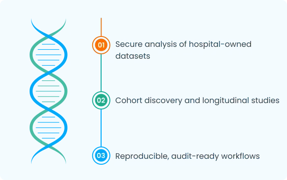 Genix.ai supports pharma and biotech teams with AI-assisted genomic intelligence to accelerate biomarker discovery, improve cohort stratification, and enable data-driven decisions across the drug development lifecycle.